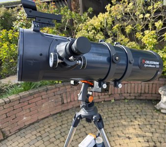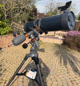 This is a 130mm telescope is as new boxed complete with an EQ drive and an RA motor drive. The telescope includes a 20mm erecting eyepiec, 10 mm eyepiece and a 2X Barlow.